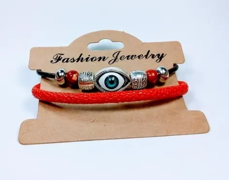 Pulseras De Cuero Negro Para Hombre O Mujer Con Ojo Azul