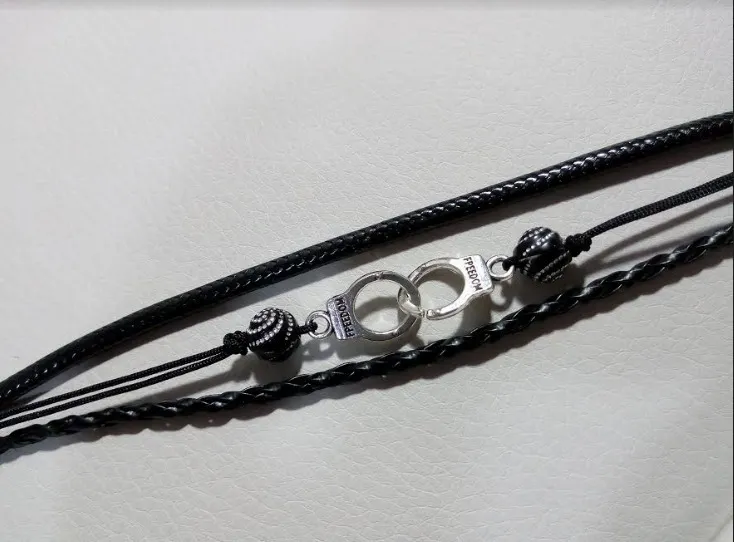 Pulsera Freedom, Libertad, Esposas, Cuero Negro.